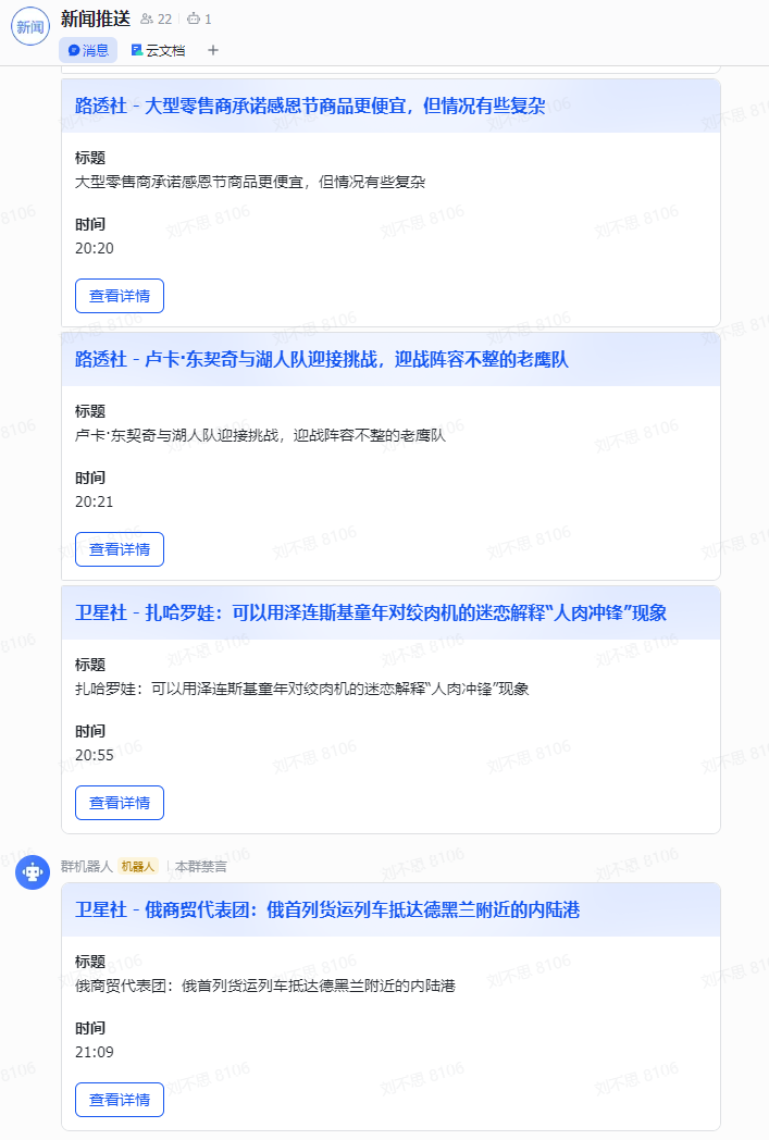 之后,又添加了彭博社和路透社的新闻,因为流程已经通了,加这两个渠道速度就更快了。